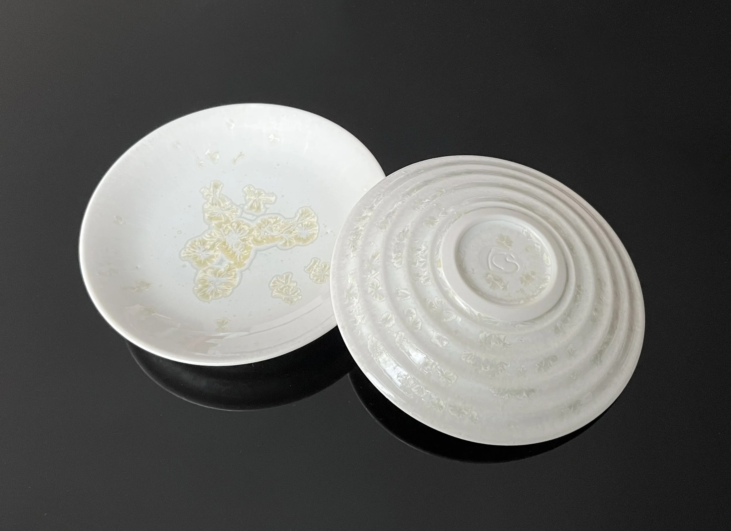 Infiniment raffiné, émaillé légèrement cristallisé évoque les pétales de Fleur de Neige.